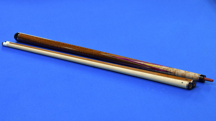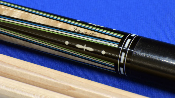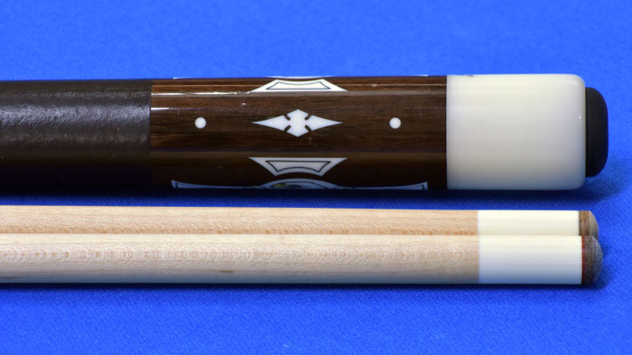 This is one of the biggest Art Cantando Cues I have ever seen. It was one of the two unfinished cues in his shop when he unfortunately passed away. This and the other cue were finished by Barry Szamboti and were owned by a well known collector and then sold to another collector who had kept it for many years...