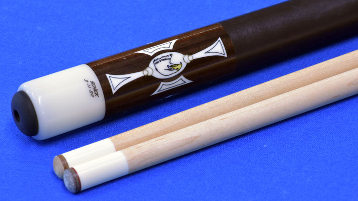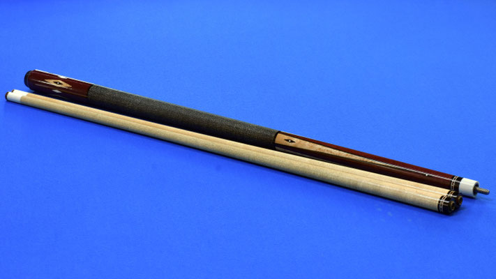 For sale is an excellent example of an early Barry Szamboti Cue. This cue is in all original condition and is straight together and apart and has a classic Szamboti design with the inlays and veneer combination. There is a 3rd shaft that was made later by Barry as well...