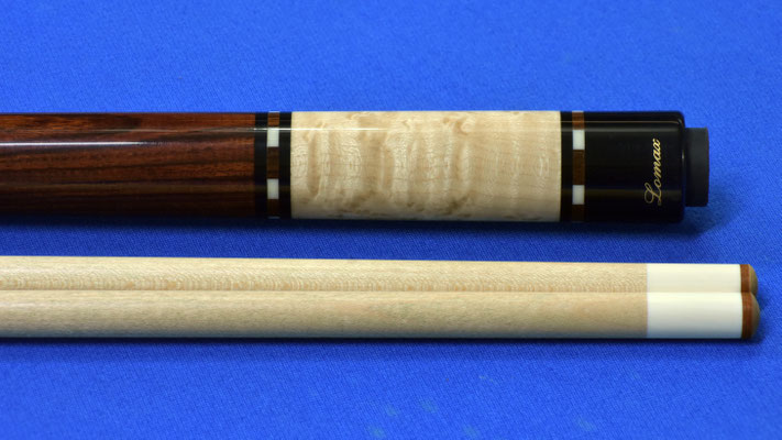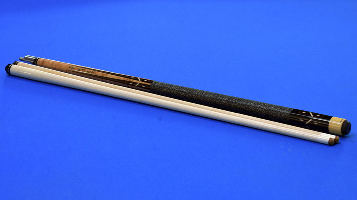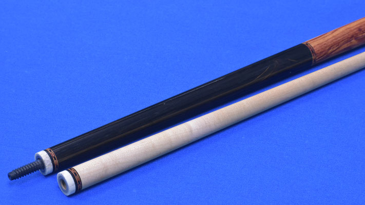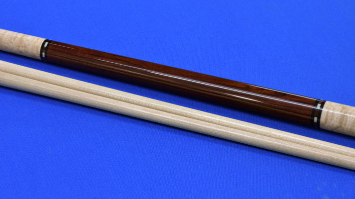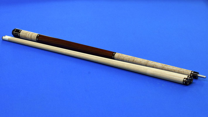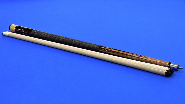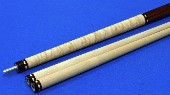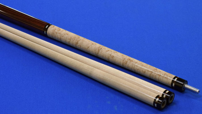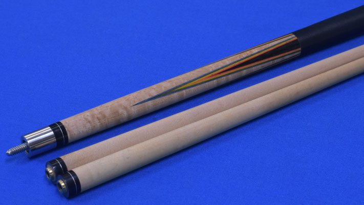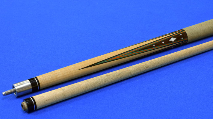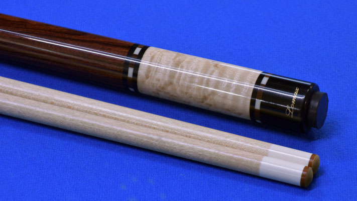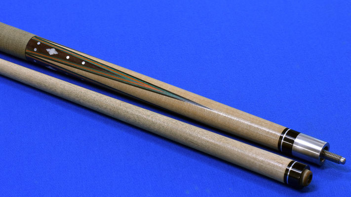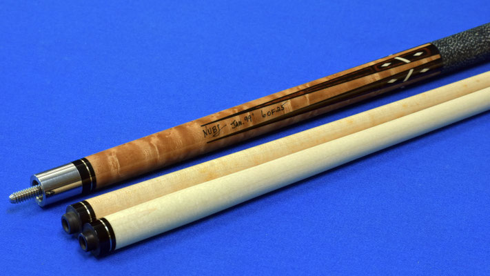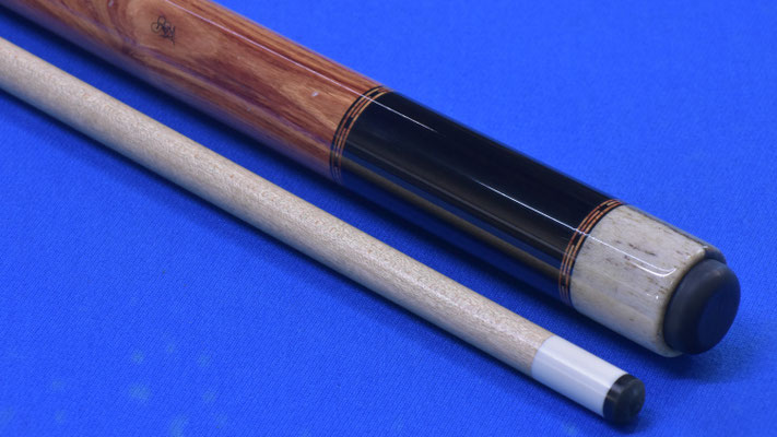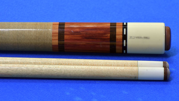 I have no idea who made this cue but after checking everything out here in my shop, I can say that it is a quality made cue. The butt and shaft are straight and everything seems very well executed, the facings are very clean and so is the joint pin and collars. I have included photos of the bumper which may not be original to the cue but does say "made in Canada" on it. The cue plays well and the points are very straight and even and this cue came out of a collection of many higher end cues but again, I have no idea who made it.