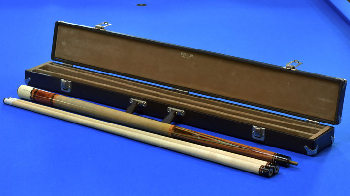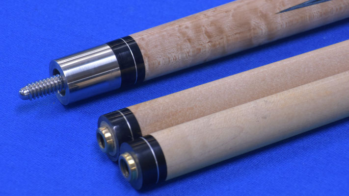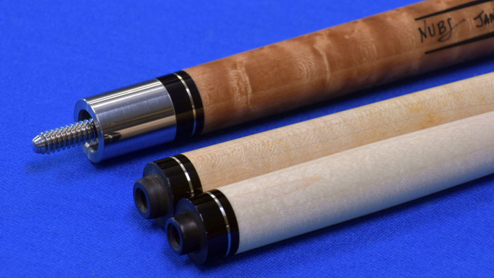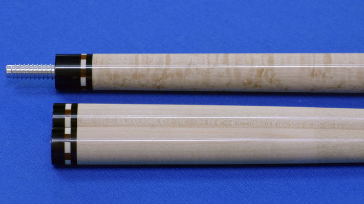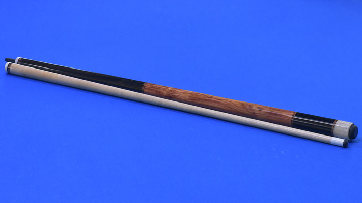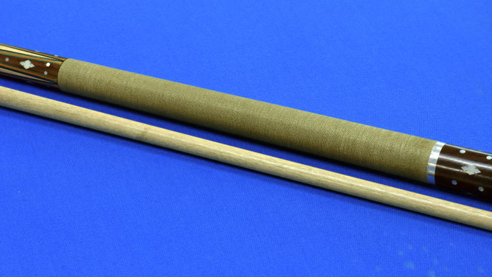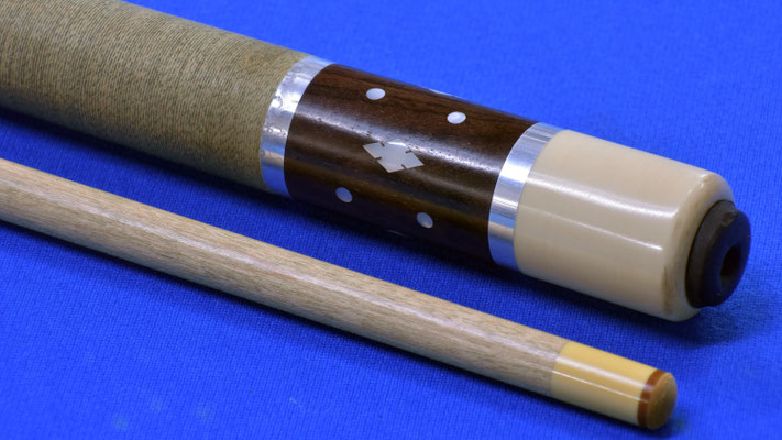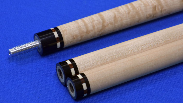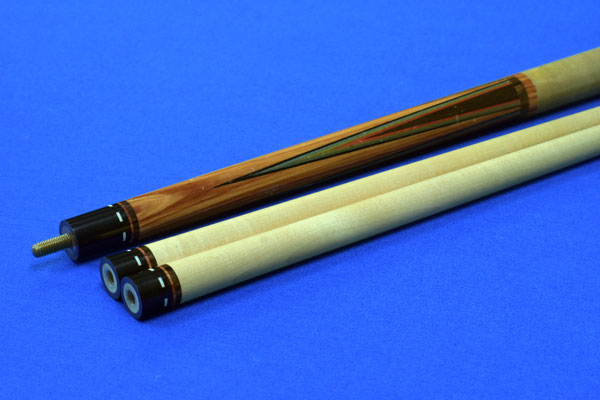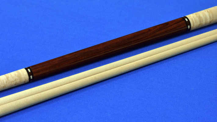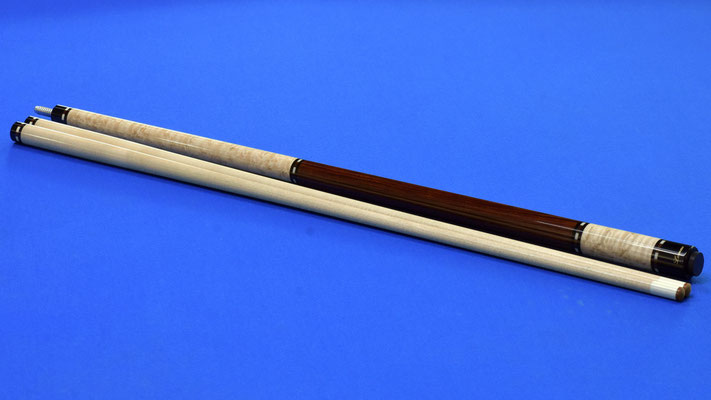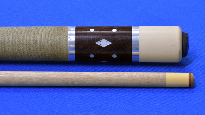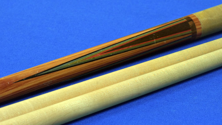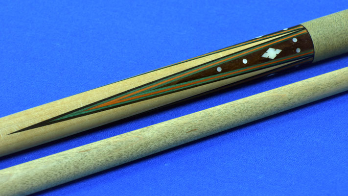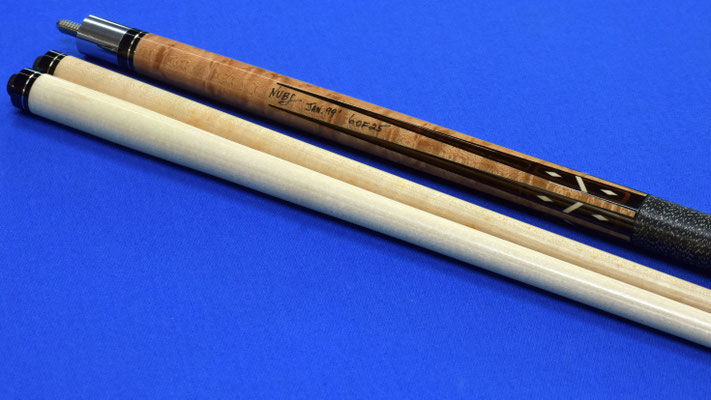 I have no idea who made this cue but after checking everything out here in my shop, I can say that it is a quality made cue. The butt and shaft are straight and everything seems very well executed, the facings are very clean and so is the joint pin and collars. I have included photos of the bumper which may not be original to the cue but does say "made in Canada" on it. The cue plays well and the points are very straight and even and this cue came out of a collection of many higher end cues but again, I have no idea who made it.