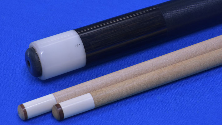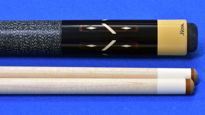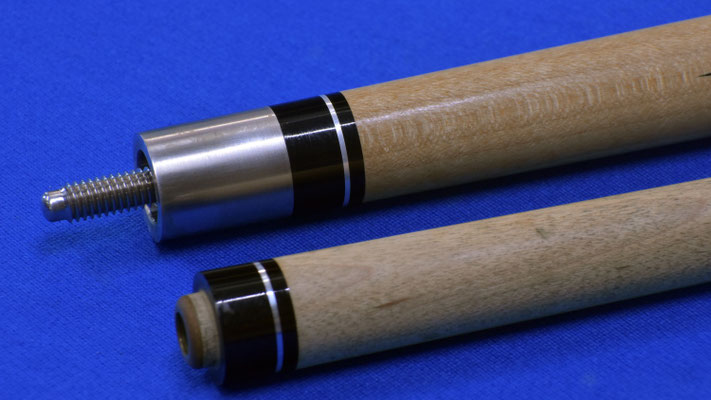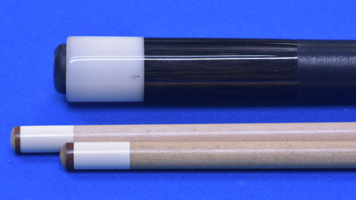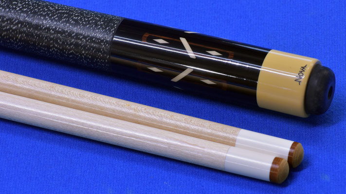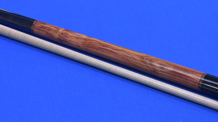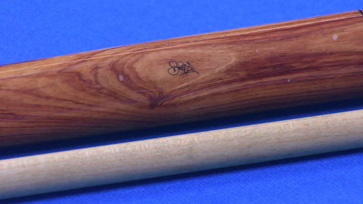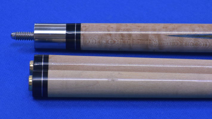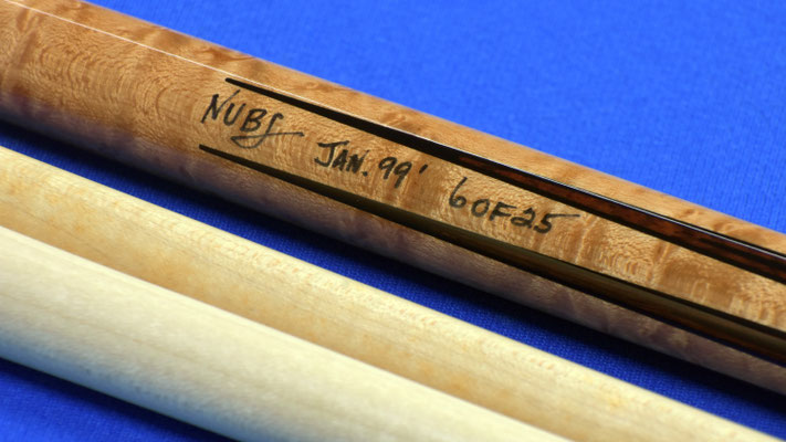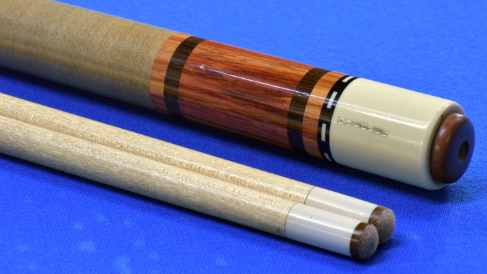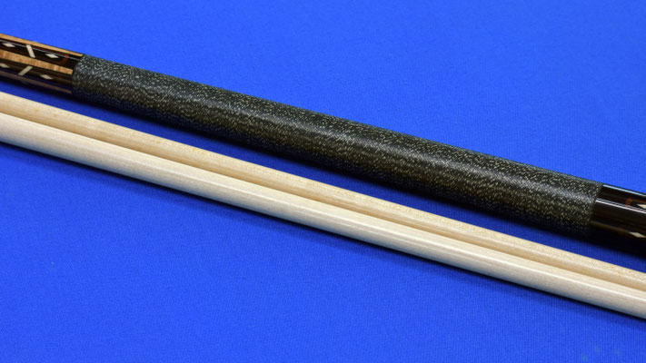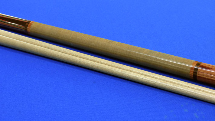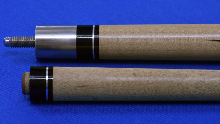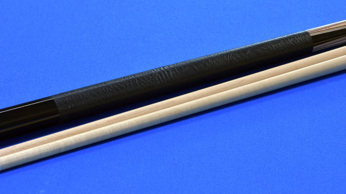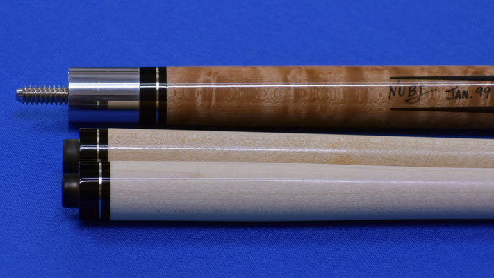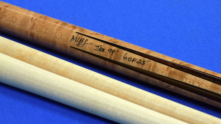 This cue has been chalked and is considered "Test hit" as zero residual chalk is showing and it is free of dings and dents, there is one touch of finish with air underneath on the shaft collar