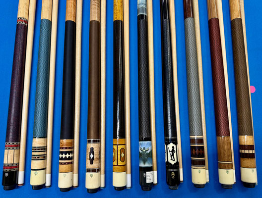 - Meucci plain black cue has finish bumps and dents B-29" 13.13oz (weight to be added) S-29" black dot 12.75mm 4.21oz